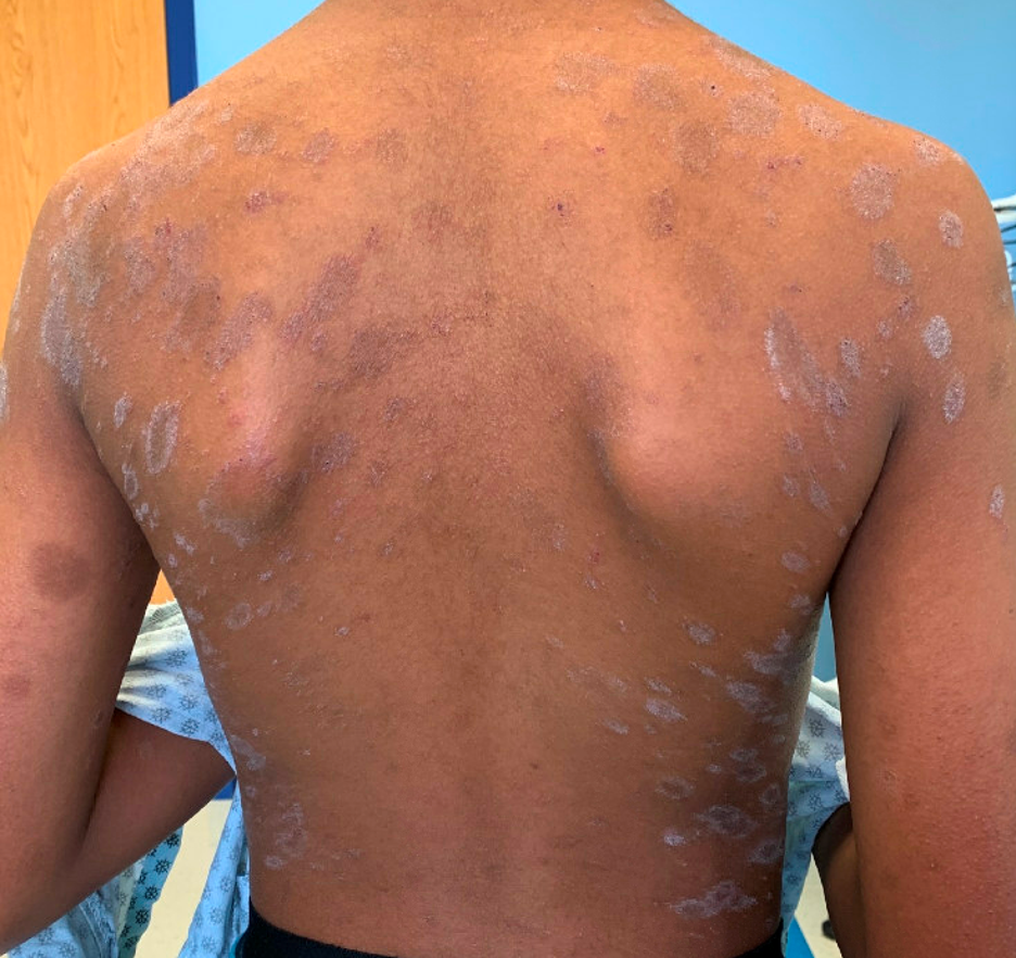 Visual Diagnosis: A Scaly Truncal Eruption